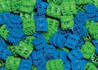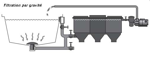 Les anneaux flottants ont la particularité d'être alvéolés, permettant la formation de petits tourbillons lorsqu'ils sont en mouvement. L'aération arrivant par en-dessous, les anneaux sont alors sans cesse en mouvement. Après 2 mois d'utilisation, les anneaux flottants prendront une coloration brunâtre, synonyme d'une bonne colonisation bactérienne.Schéma de montage